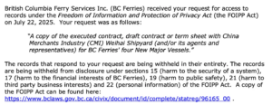 BC Ferries refuses to release contract with Chinese state-owned shipyard