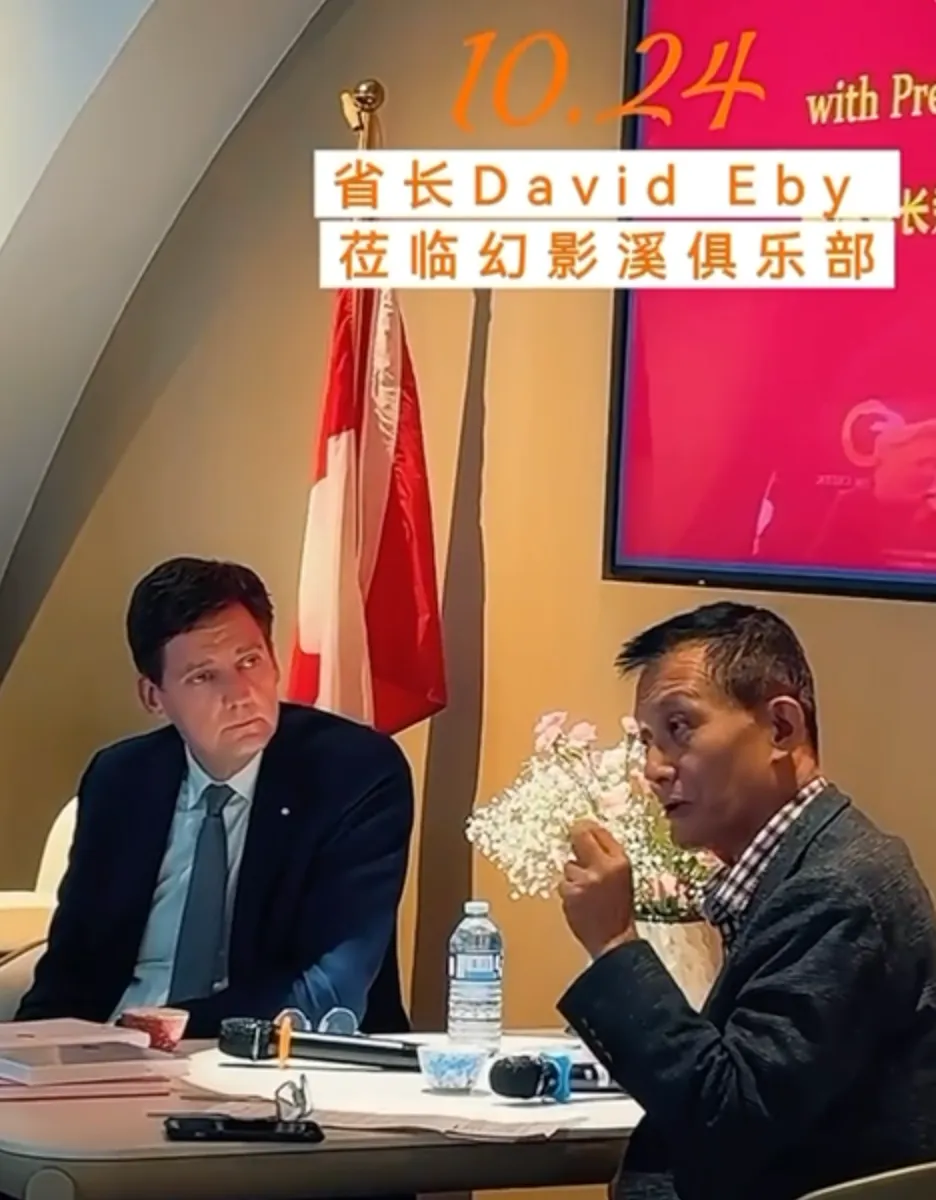 Eby’s advisor on issues related to the Chinese community is Guo “David” Ding. Video circulating on WeChat shows Eby on Oct. 24 with Ding at the Phantom Creek Estates Winery hospitality club.