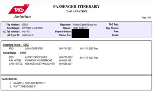 Ghislaine Maxwell and Theodore Waitt’s trip to Vancouver and Victoria aboard a Gulfstream V.