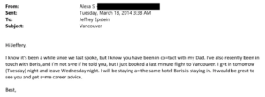 Email from Alexa Staley, daughter of disgraced former Barclays CEO Jes Staley. Boris Nikolic was a scientific advisor to Bill Gates.